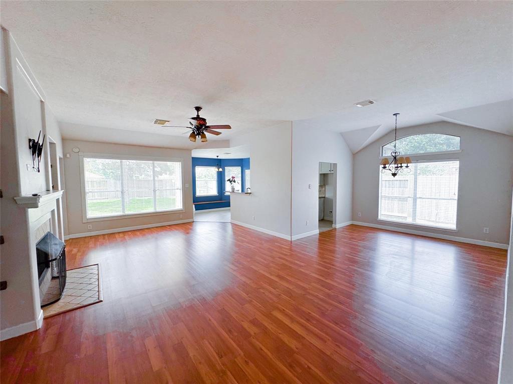 Beautiful single-story home with 3 bedrooms, 2 full baths, and a dedicated study. Features an open-concept layout with high ceilings, spacious living area, and tile flooring in common spaces. The kitchen includes ample cabinet space, breakfast bar, and opens to the family room. The primary suite offers a large walk-in closet and dual sinks. Fully fenced backyard with covered patio, perfect for outdoor entertaining. Located on a quiet street in Bear Creek Plantation with access to community parks and pool.