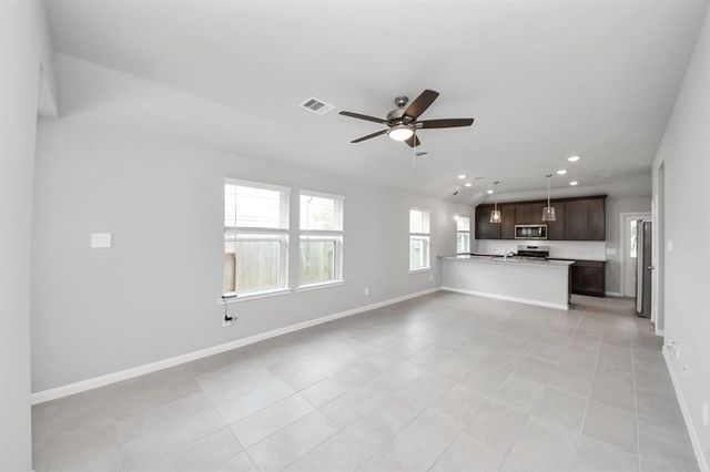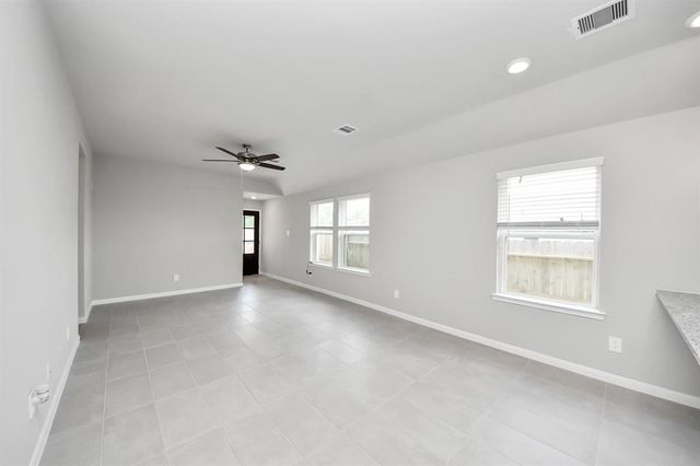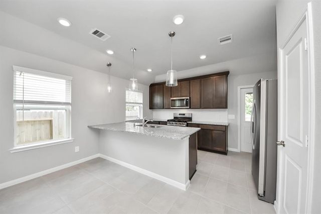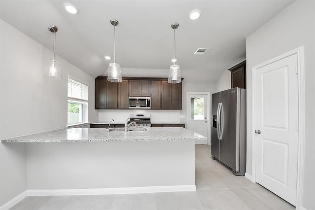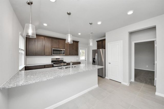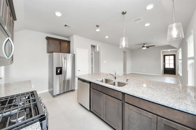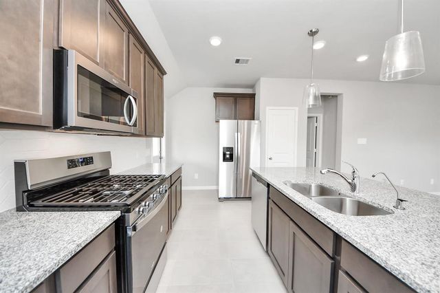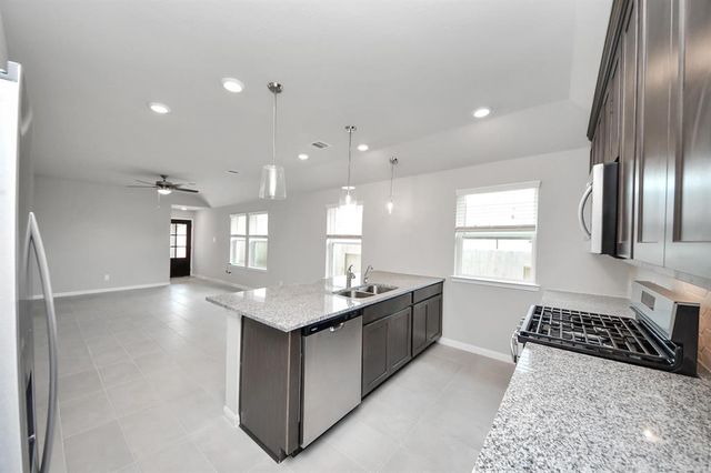 Welcome to this charming single-story home in Montgomery Ridge, nestled among hills and lush trees. Enjoy the open-concept kitchen with dark brown cabinetry and granite countertops. Features include a choice kitchen with sink on island, tile flooring, pendant lighting, and stainless steel appliances. Conveniently located near FM 2854 and SH 105, this home is part of the sought-after Montgomery ISD schools. Embrace the tranquility of this southwest-facing homesite, minutes from Lake Conroe. Take advantage of community amenities including a pool, clubhouse, trails, and playgrounds. Don't miss out on this opportunity to call 19592 Stripe Hill Bend your new home.