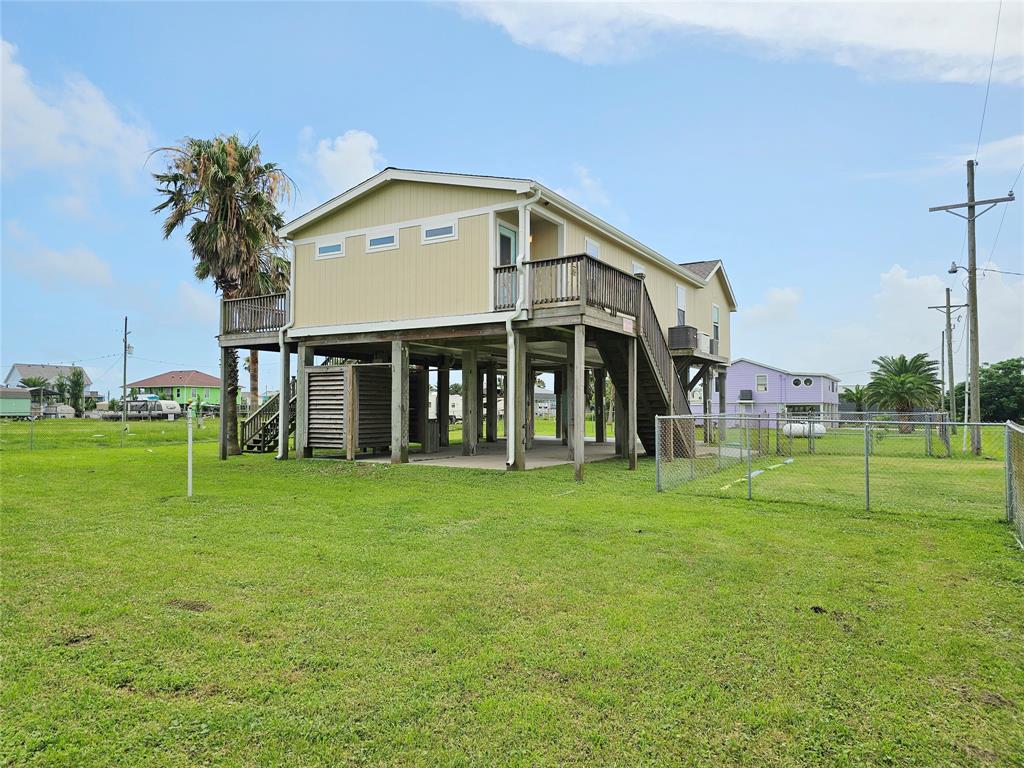 This bright and spacious 4-bedroom, 3-bath home is ready for you! It sits on three lots (15,000 sq ft, per owner)! Perfect to rent out or enjoy for yourself. Features include two primary bedrooms, three entrances, and two staircases for easy access. Located just minutes from the beach, restaurants, and local attractions, this home brings easy coastal living to life.
