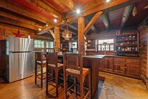 Step into this charming log cabin that feels like a Norman Rockwell painting brought to life. Nestled in a serene, wooded setting directly across from the water, this home blends rustic charm with modern comfort. Towering trees, scenic lake views, and a park-like feel create the perfect retreat for nature lovers. Enjoy cozy nights by the stone fireplace, warm wood finishes throughout, and an inviting, rustic interior. Adjoining lots offer added privacy and a peaceful, nature-filled backdrop. Located just across from the neighborhood pool, playground, and boat ramp, convenience meets tranquility. Whether you're seeking a weekend escape or full-time haven, this storybook cabin offers more than just a home—it’s a lifestyle. Don’t miss your chance to make it yours!
