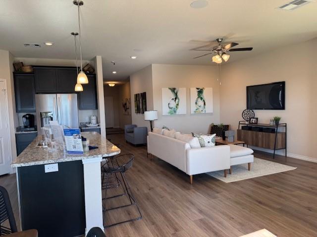 This prior model home is our Prescott floor plan. The Prescott is a single-story, 1953 approximate square foot, 4 bedroom and a study, 2.5-bathroom, 2 car garage home. Designed with you in mind, this layout features an open layout with a living room and dining space that leads to an open kitchen. The spacious Bedroom 1 suite is located off the living room and features a relaxing spa-like bathroom with a double vanity and spacious walk-in closet with plenty of room for storage. You’ll enjoy added security in your new DR Horton home with our Home is Connected features. Using one central hub that talks to all the devices in your home, you can control the lights, thermostat and locks, all from your cellular device. DR Horton also includes an Amazon Echo Dot to make voice activation a reality in your new Smart Home. Available features listed on select homes only. With D.R. Horton's simple buying process and ten-year limited warranty, there's no reason to wait.