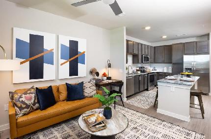 Enjoy wood-vinyl plank flooring, granite countertops, and smart lock entry doors in every home. Kitchens and bathrooms feature spacious undermount sinks, designer tile backsplashes, and shaker-style hardwood cabinets. Residents benefit from stainless steel appliances, including side-by-side refrigerators with in-door ice and water, along with full-size washers and dryers. Each residence includes generous walk-in closets. Community amenities include a clubhouse with a kitchen, coffee bar, pool table, and WiFi access throughout. The business center offers private conference rooms, work nooks, and a WiFi printer. Outside, a resort-style pool, grilling stations, and green lawn areas invite relaxation and fun. Fitness enthusiasts will love the state-of-the-art athletic club, while additional conveniences like bike storage, dog parks, controlled-access parking, 24-hour package lockers, and electric vehicle charging stations enhance the living experience.