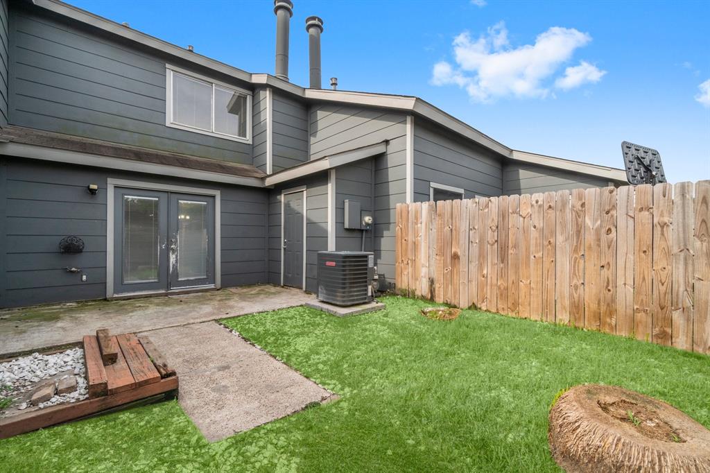 Adorable 2 bedroom townhouse close to 59, The beltway and George Bush Intercontinental. Downstairs you will find a spacious living area with a fireplace. The open floor plans offers a kitchen overlooking the dining area. Easy access to the half bath for your guests. Upstairs you will find both bedrooms with full bathroom. Sitting at the back of this quaint community. Don't miss your private deck and fenced small backyard. Home includes covered parking. Schedule your tour today! Great investment property or to live here.