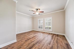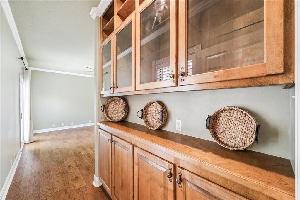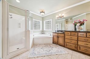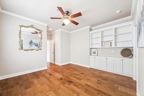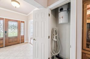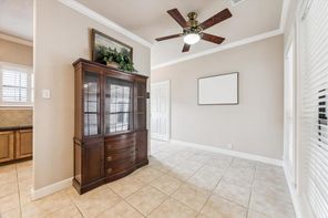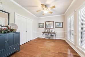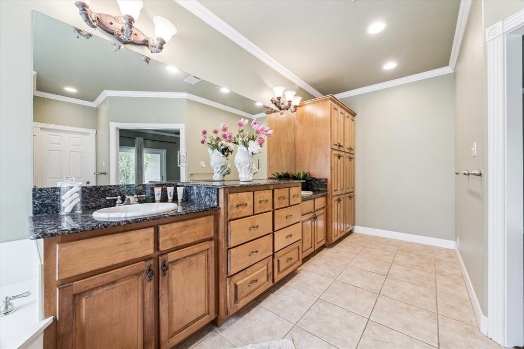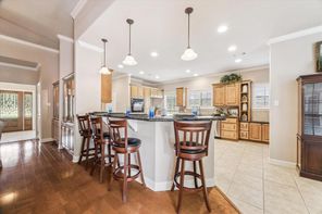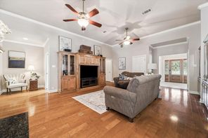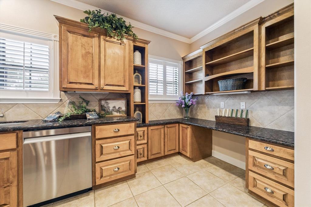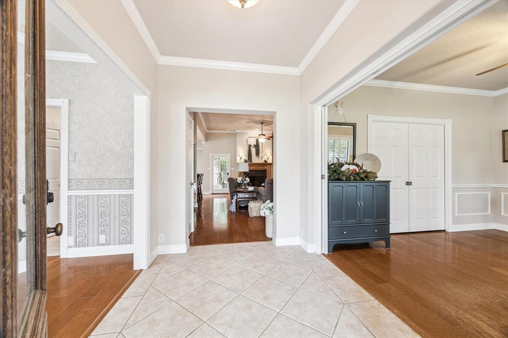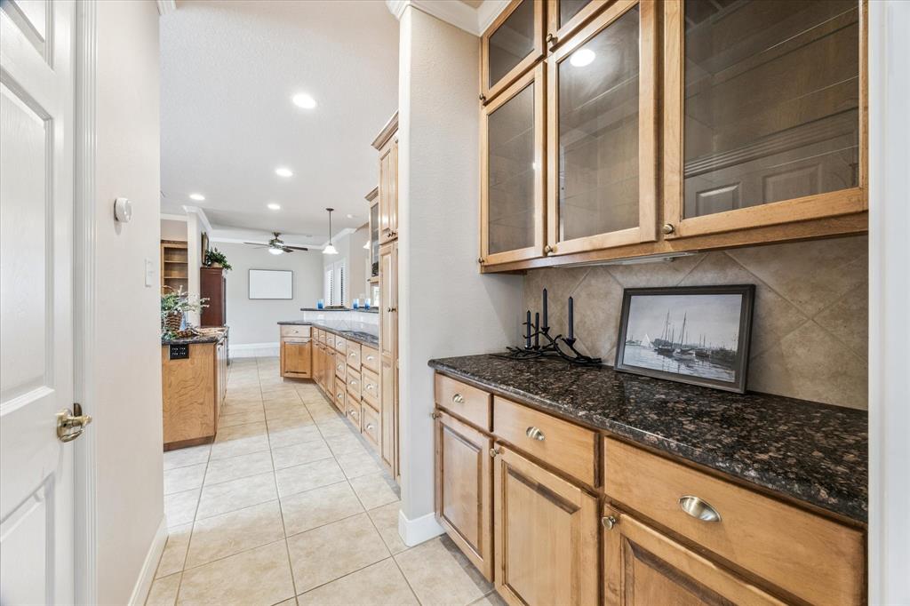 This true custom, one-owner home was crafted for everyday living and long-term value, offering over 3,200 sq ft of efficient single-story design in a small-town community with no HOA, no Mud Taxes, and no flooding history. Built with craftsmanship and efficiency in mind, it features a brand-new Windstorm Certified roof with transferable warranty, newer HVAC, newer water heater, and pool pump <1 yr old—major expenses already handled for you. A gated entry and curved drive lead to an oversized detached garage/workshop measuring 47’8” x 35’5”, complete with sink and A/C—perfect for vehicles, projects, and storage. Inside, hardwood floors, crown molding, plantation shutters, and custom cabinetry highlight timeless design. The gourmet kitchen offers granite counters, a commercial-grade gas range, double ovens, large island, and butler’s pantry. The expansive primary suite plus versatile rooms for office, crafts, or hobbies add flexibility. Outdoors, enjoy a covered patio and sparkling pool.