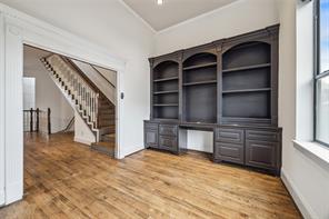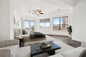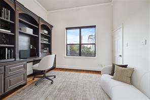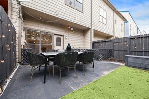 LOCATION, LOCATION, LOCATION! Fabulous home located in the heart of desirable Montrose! This gated Brownstone is urban living at its finest! Designed by award winning Architect W. Irving Phillips. Oversized picture windows & 2 private terraces offering spectacular views of Downtown! Recent stucco repairs ('25), newer AC '(22), water heater ('20), roof ('19)! Grand entrance w/soaring ceiling. 2nd floor open concept family rm/dining/kitchen; ideal for everyday living & entertaining! Wonderful 2nd fl study w/convenient built-in desk/shelves + full bath; makes an optional 3rd bed! Stunning gourmet kitchen w/expansive island, SS appliances. Spacious 3rd fl primary w/jacuzzi tub, separate shower, 2 sinks. Nicely sized 1st floor bedrm w/a murphy bed & bath. Backyard patio+turfed green space; ideal for pets & outdoor enjoyment. High ceilings, wood floors, extensive crown molding. Walk to tons of popular dining/nightlife/shopping. Minutes to Downtown/Med Center/Museum District. Lock & leave!