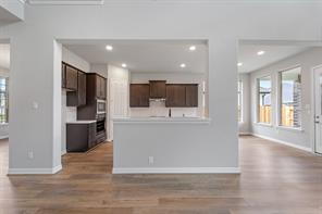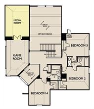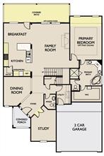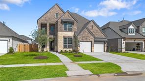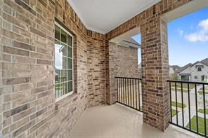 Balcony and front porch with a beautiful brick and stone elevation. The Bridgeport home plan exudes elegance and sophistication, featuring stunning architectural details throughout. As you enter, the gracious foyer leads you to a formal dining room, setting the tone for refined gatherings and a study with french doors. The heart of the home is the kitchen, complete with a spacious island. Extended covered patio with gas & water lines for a future outdoor kitchen. Primary bedroom has a bay window & the primary bathroom has 2 sinks with a vanity, garden tub & a shower with a seat. Upstairs has 3 bedrooms & 2 bathrooms & a game room that leads to the balcony & a media room with 5.1 pre-wired surround sound. This home features the Artisan collection where the focal color is earthly tones and artfully mixed textures. Located in Stone Creek Estates zoned to sought after schools low HOA dues with 2 pools, playgrounds, tennis court, volleyball court, dog park, walking trails and a splashpad.