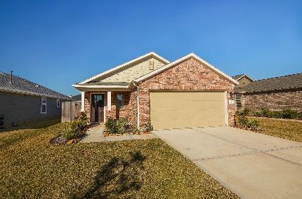 Beautiful rental opportunity in Eagle Ranch West; complete with 3 bedrooms, 2 full bathrooms & 2-car attached garage. Updates include a recent roof (2020), high-efficiency AC (2019) & gorgeous wood-look tile flooring in living, kitchen, hall, baths.. The open-concept floor plan includes a spacious family room with a gas log fireplace, open to the breakfast room & Chef's kitchen; wood cabinets & stainless steel appliances; including an electric oven, 5-burner gas range & built-in microwave. Master Suite offers private en-suite bathroom; with his & her sinks, an over-sized soaking tub + standing shower & walk-in closet. Both secondary bedrooms are bright & spacious with newly installed carpet. Step out back to a large covered patio, & fully-fenced backyard. It's just a 1-2 minute walk to the community playground & walking trail. Near tons of shopping, dining & entertainment. Zoned to Cypress-Fairbanks ISD.