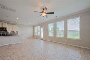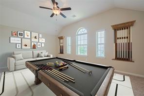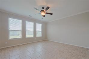 This warm brick home in the master-planned Grand Mission Estates offers breathing room and everyday ease. Set on a large lot, the property delivers a sense of space that carries through from the expansive yard to the calm, neutral interior. Subtle finishes and a timeless palette provide a clean slate, while gutters and downspouts are already in place for added function. Beyond the front door, residents enjoy access to over 40 miles of trails, sprawling soccer fields, and a 5,500-square-foot clubhouse equipped with a fitness center, media room, and children’s play area. Summer days are well spent at the Jr. Olympic pool, coasting down the twin 18-foot slides, or cooling off in the splash zone. It's a home that keeps pace with whatever the day brings—quiet mornings, active weekends, and everything in between.