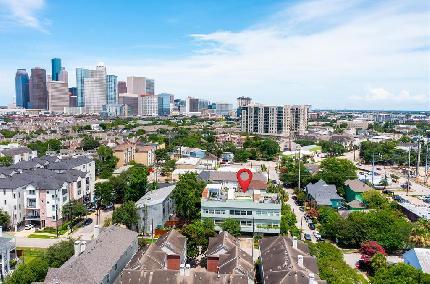 Modern 3 Bed 3.5 Bath Townhome located in the heart of Midtown Houston, this stylish three-story townhouse offers 3 spacious bedrooms, each with a private full bath, plus a guest half bath. The second floor features an open-concept living, dining, and kitchen area with hardwood floors (tile in the kitchen), a walk-in pantry, high ceilings, and abundant natural light. The kitchen includes granite countertops, stainless steel appliances, and large island—perfect for entertaining. The first floor includes a private guest suite with full ensuite bath & walk-in closet. The 3rd flr. primary suite features a walk-in closet and a spa-inspired bath with dual sinks, jetted tub, and a separate shower. An additional bedroom with its own full bath and walk-in closet completes the top level. Mature oak trees surround the property and community, offering shade and charm. Enjoy an attached,spacious 2-car garage. Easy access to downtown, the Medical Center, METRORail, parks, dining, and nightlife.
