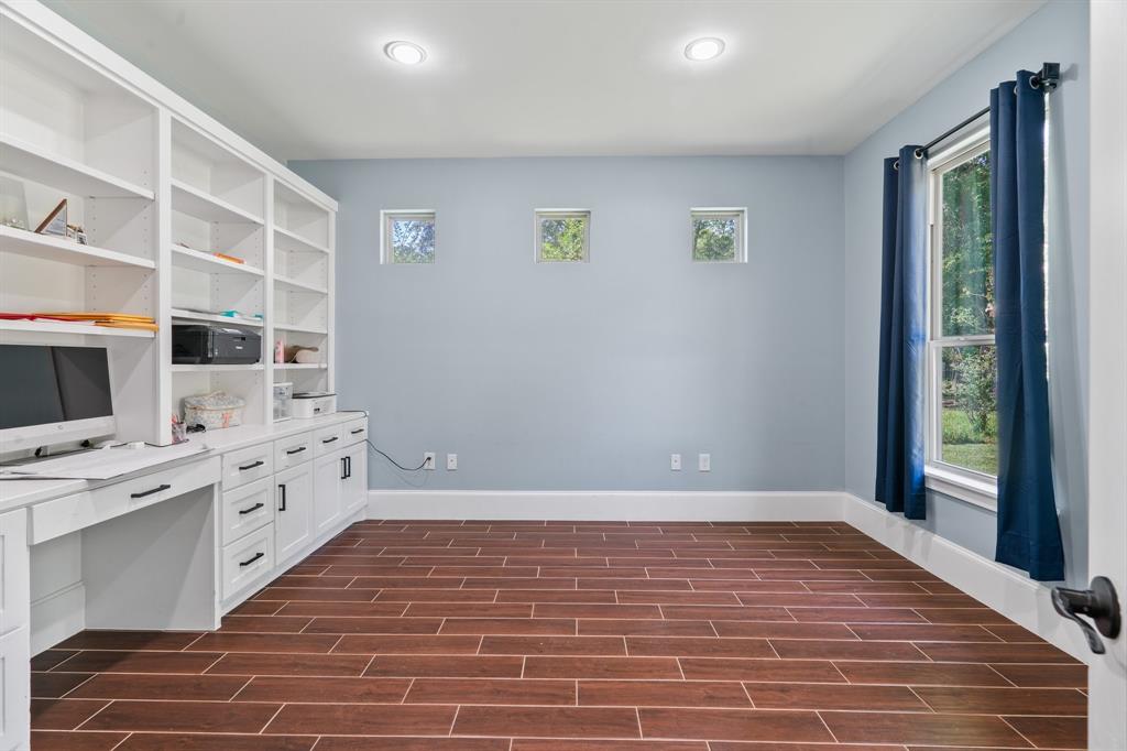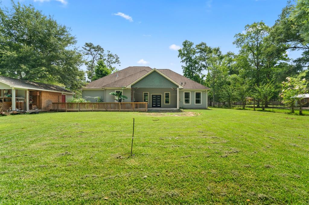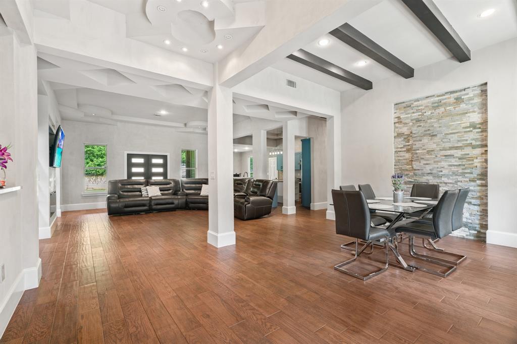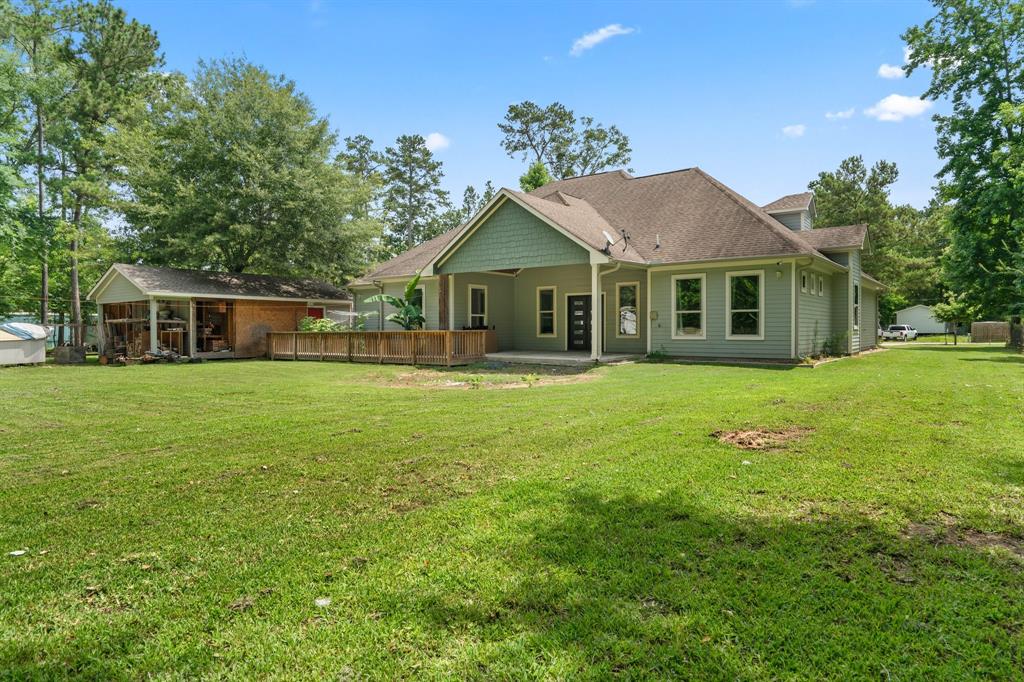This spacious 5-bedroom, 2.5-bath home offers 3,342 sq ft of beautifully designed living space on a half-acre lot. Featuring 4 bedrooms downstairs and a private 5th bedroom upstairs, the layout provides flexibility for families of all sizes. All bathrooms are conveniently located on the main level. The heart of the home—the kitchen and living room—features American Clay plaster walls, offering more than just elegant texture. This natural, eco-friendly finish helps regulate indoor humidity, resists mold and mildew, and improves air quality while adding a warm, earthy aesthetic to your living space. Combined with high ceilings and oversized rooms, this home offers a perfect balance of comfort, style, and sustainability.