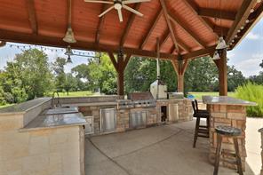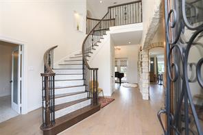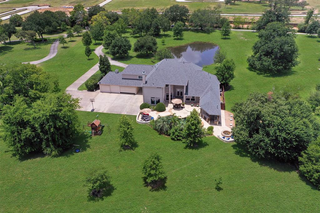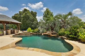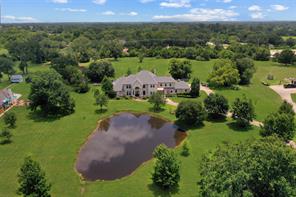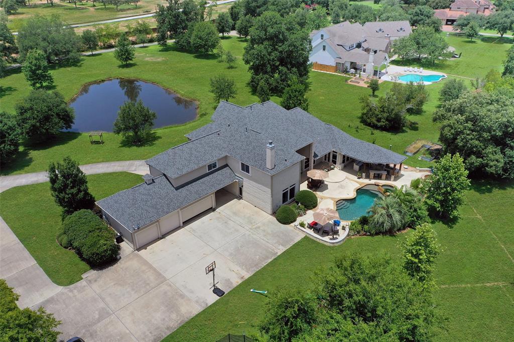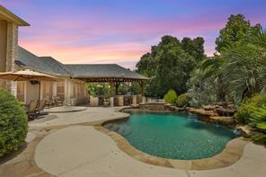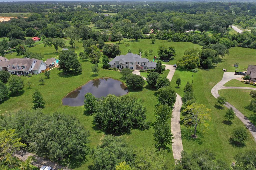 5 acres in small gated community-this custom home has it all. Horses allowed. Close proximity to 99 and Tomball ISD schools. The private treelined street leads you to the manicured property with pond. Enter through double doors to a 2 story foyer and curved staircase. Stone accented arches in the formal dining room and kitchen. Gourmet kitchen boasts quartz countertops, large island/breakfast bar, recent stainless appliances incl. a double convection oven and built-in refrigerator. Primary suite features tray ceiling and attached study. The fully renovated master bath features marble finishes, soaking tub/separate shower, and dual vanities. The downstairs guest suite has it's own sitting and study area and private bath. Upstairs you find 4 large bedrooms-all with bathrooms, huge game room + bonus room. The backyard is paradise with it's lagoon style pool/waterfall, recent spraydeck, firepit and covered kitchen. 4 car garage and tons of parking, incl porte cochere.
