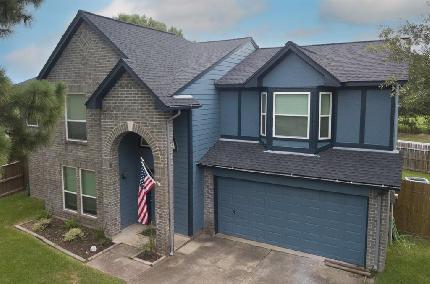 ROOF COMPLETED 4 YEARS AGO, FRESH INTERIOR PAINT AND NO BACK YARD NEIGHBORS! This beautifully maintained home is ready for you! Soaring 2 story ceilings as you enter. Executive study off the entry is perfect for working from home! Arched entryways lead you to the den space with gas log fireplace. Laminate wood, tile and carpet flooring through out. The primary suite is tucked away on the first level for ultimate privacy. Upstairs you will find the spacious gameroom and 3 large bedrooms! Super clean cooks kitchen with Corian counters, Gas cooking range, plenty of cabinet/pantry space and opens to the family and breakfast areas. Solar screens along the back of the property. Fantastic patio area off the back to enjoy your evenings. This one is ready for move in!
