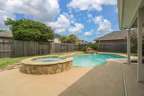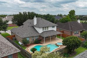 Welcome to your dream home in the sought-after Brittany Lakes subdivision! Located on a Cul-de-Sac street with one of the community playgrounds, this meticulously maintained 4-bedroom, 3.5-bathroom home offers a thoughtful layout with the primary suite & private home office on the first floor, plus a formal dining room. The remaining bedrooms and game room are upstairs, creating a functional separation of space perfect for everyday living. Step outside to your personal retreat, complete with a beautifully landscaped yard, a large, covered patio with three ceiling fans, and a sparkling saltwater pool and spa featuring a tranquil waterfall. The home has seen numerous updates, including fresh interior paint 2025, new pool/spa lighting in 2025, spa blower 2025, carpet 2024, roof 2023, water heater 2024, AC in 2021, new glass shower door 2024, Repainted Patio 2024, Epoxy painted garage 2025—just to name a few. Centrally located w/ easy access to I-45, shopping, dining, and entertainment.