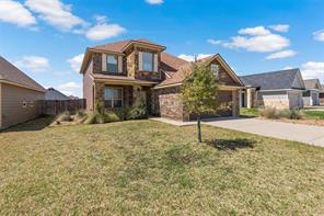 Exceptional home in Bryan's Edgewater Community! Discover the allure of this remarkable 4-bedroom, 3.5-bathroom residence with a thoughtful layout. The galley-style kitchen serves as the heart of the home, boasting modern white cabinets, sleek granite countertops, upgraded stainless steel appliances, a convenient pantry, and a cozy breakfast area. Adjacent to the kitchen, the formal dining room awaits special gatherings. The spacious family room features impressive two-story ceilings and provides delightful views of the backyard. The main floor's master suite offers a garden tub, separate shower, double sink vanity, and a walk-in closet. Venture upstairs to discover three additional bedrooms, two full bathrooms, and a versatile second living area, perfect for a study or hobby space. The interior's elegance is echoed outdoors with a private backyard, a HUGE COVERED PATIO area for entertaining, and a full yard sprinkler system. Don't miss out on this exceptional property in Bryan.