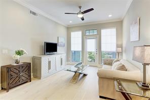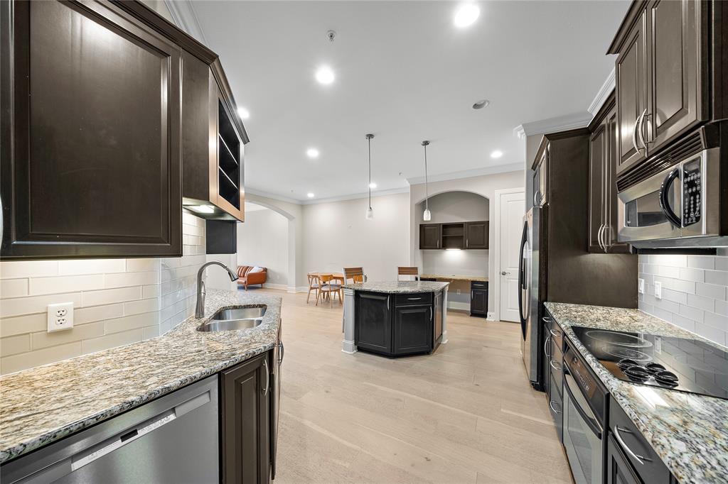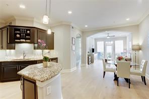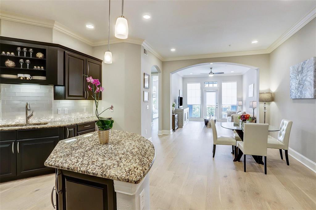 The Kipling Condominiums offers luxury living at it's finest, a 4 story mid-rise in the highly sought-after River Oaks Area. This one-bedroom, one-bathroom unit has an open floor concept with defined living and dining rooms, its own private balcony, breakfast bar and spacious kitchen anchored with brand new hardwood floors. A chefs dream with stainless steel appliances, an abundance of granite countertops and newly added glass tile backsplash. A computer nook upon entry provides additional storage and a functional work area. A primary suite with walk-in closet, large windows, and access to the private balcony, awaits you. The oasis-like primary bathroom boasts a dual sink vanity and newly renovated seamless glass walk-in shower. One assigned parking space and neutral designer paint and finishes throughout, this unit is full of upgrades ($30,000) which were completed in 2020! Walking distance to Trader Joe's, Whole Earth Provisions, and the best dining and shopping Houston has to offer!