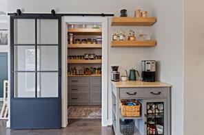 Move In Ready 4 bedroom home w/ designer upgrades. 1st floor w/a living area & a full guest ensuite, a covered patio & full yard w/ low maintenance artificial turf. Island kitchen opens to living & dining area has quartz, gas cooking, plus a custom designed walk-in pantry. Breakfast w/ accent wall leads to one of 3 outdoor spaces. Wood flooring, a wet bar & French doors open to a balcony. Extra space off the living area is perfect for a home office. Primary suite w/sitting area, tray ceiling, accent wall & closet w/ barn door has custom cabinetry. Plus two more bedrooms & a full bath. Laundry w/ custom cabinets. Fresh paint, new carpet & padding, designer fixtures, solar powered attic vent, living room wired for surround sound, tankless water heater, huge garage w/storage racks. This home is situated near extra neighborhood parking on Kerr, making it ideal for residents & guests. It's a perfect location with nearby walking paths and just steps from the serene Bauer Pocket Park!