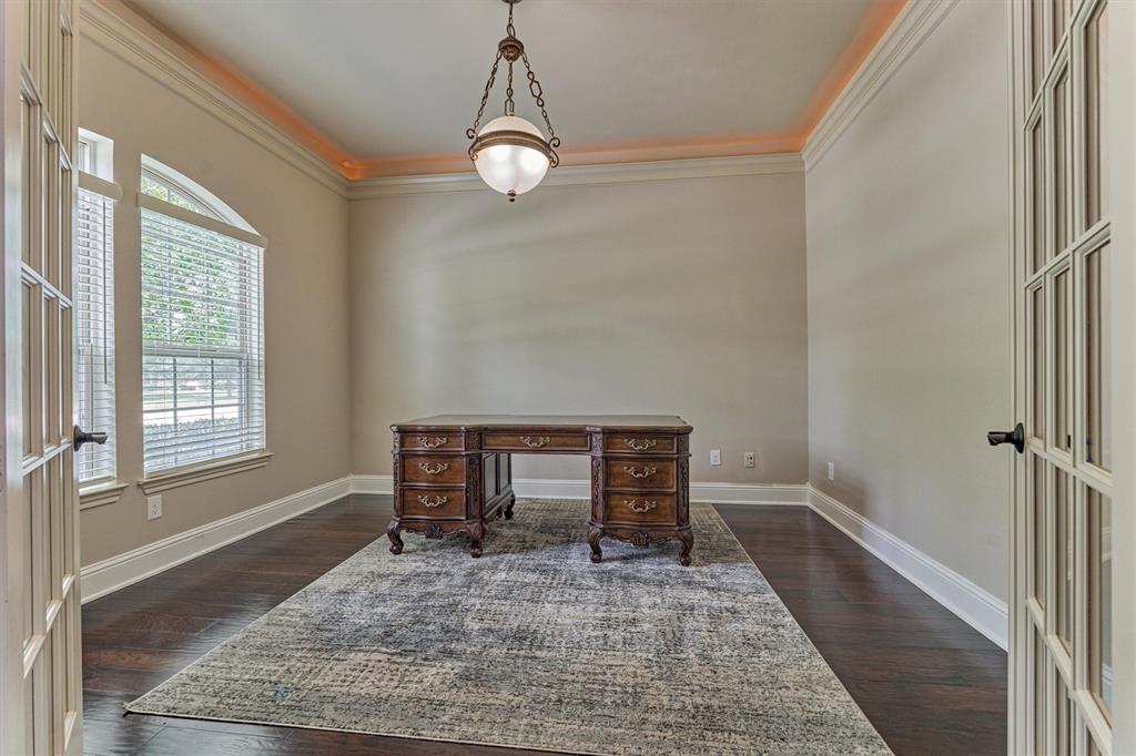 Nestled on 2/3 acre lake lot in Lakes of Fairhaven, this stunning home greets you w stately porte-cochere stone+brick elevation & circular driveway. Grand dual-arched mahogany doors formal entry leads to a large family rm w lots of windows for breathtaking panoramic views of pool backyard oasis. The gourmet kitchen includes 48” gas cooktop w/grill & griddle, double ovens, under counter refrigerator drawers, island, granite countertops open to the family rm. Downstairs features home office, formal living & the primary suite w spectacular views of backyard, attached sitting area large ensuite bath, large closet, glass shower, jetted tub w/ marble surround. Upstairs features a huge game rm, media rm & 4 graciously sized bedrooms w 3 full bathrooms. Step outside and be mesmerized by the serene backdrop, with lake and forest views. Large custom pool, waterfalls, fire features, travertine decking & still lots of room to play + build out any additional items. Never flooded, not in flood zone