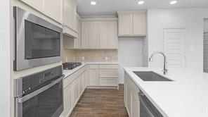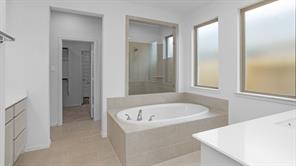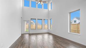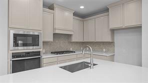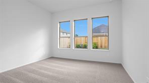 Welcoming entry extends past the kitchen, family room and dining area. Island kitchen with built-in seating space, 5-burner gas cooktop and a walk-in pantry. Generous family room with 19-foot ceiling and three large windows. Primary suite offers a wall of windows. Primary bathroom features a French door entry, dual vanities, garden tub, separate glass enclosed shower, a large walk-in closet and private access to the utility room. An additional bedroom downstairs. The second floor hosts secondary bedrooms and a full bathroom with dual vanities. Utility room additional closet and storage space and a linen closet completes this spacious design. Covered backyard patio. Mud room just off the two-car garage.