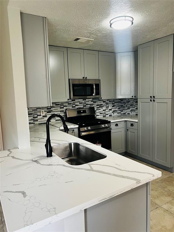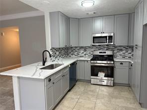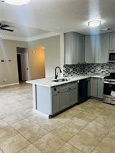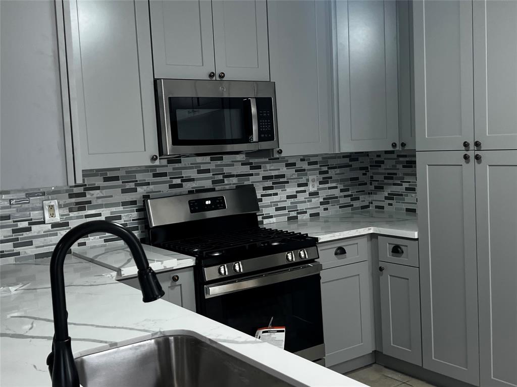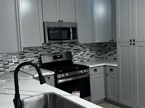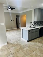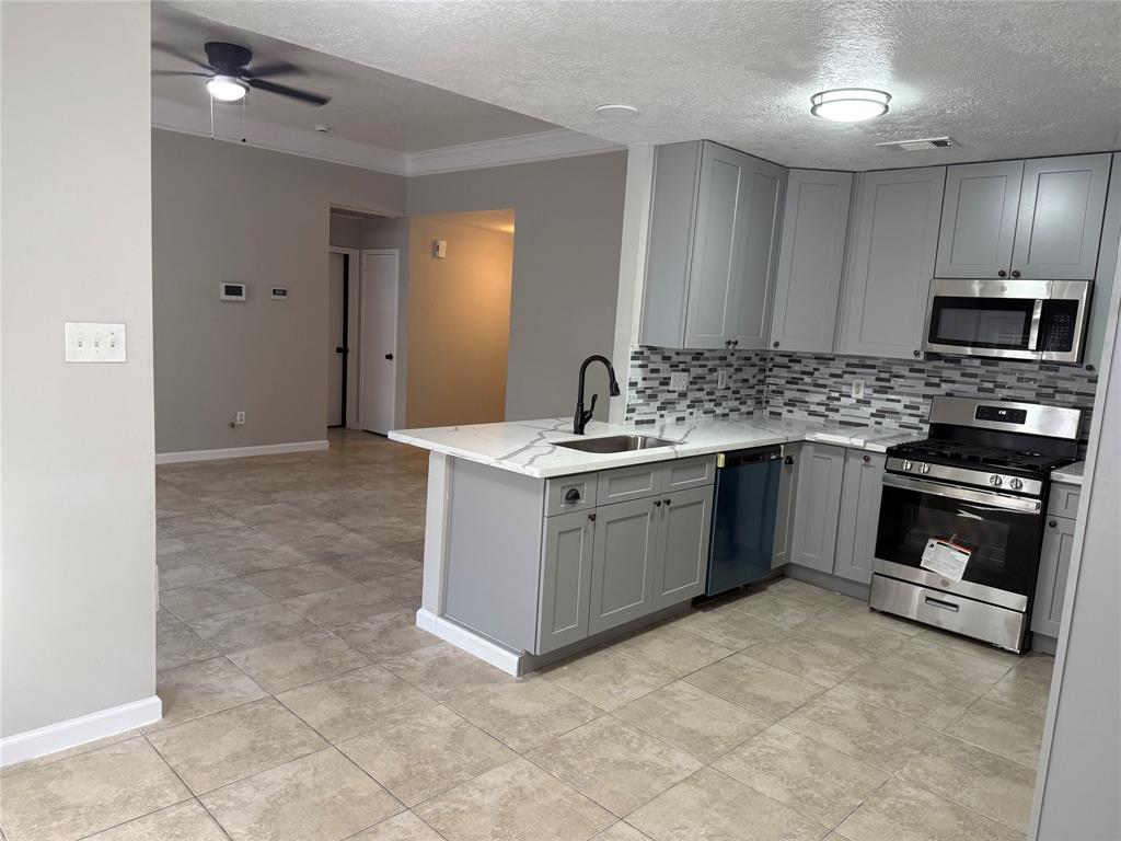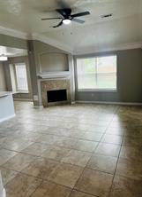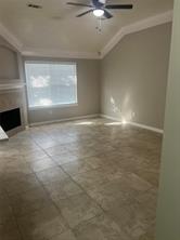 Beautifully remodeled home featuring tile and wood flooring throughout. This fully updated home has been freshly painted inside with gray-tone walls, new light fixtures, ceiling fans, and a charming corner fireplace with crown molding throughout. The kitchen has been completely redone with granite countertops, a deep undermount sink, new custom 42-inch cabinets, and stainless steel appliances. The spacious primary suite offers bay window seating, a walk-in closet, and a luxurious en-suite bath with granite dual vanities, custom cabinetry, backsplash lighting, soaking tub, separate shower, and private toilet room. The secondary bathroom has tile showers and mirrors the high-end finishes with granite counters and custom cabinetry. Enjoy outdoor living in an oversized backyard shaded by mature trees—perfect for relaxing or entertaining. The large front yard and newly remodeled interior make this home move-in ready. Seeking a tenant who will care for it as their own!New blinds all rooms