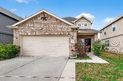 Move-in ready! Spacious 3 bed, 2 bath home with new carpet. Large master with en-suite and walk-in closet. Formal living room or study, formal dining, and breakfast area with nature views at the back of the house. Enormous upstairs area for a game room, media room, or 4th bedroom! Flex area between the secondary bedrooms. Back covered patio with ceiling fans to enjoy the outdoors with no back neighbors for privacy and peace. Low yard maintenance. Don't miss the large storage area under the stairs in the garage. Automatic garage door opener too. Community park nearby. Easy access to Grand Pkwy 99 and I-69. Refrigerator, washer, dryer included for convenience. Let's get you moved in.