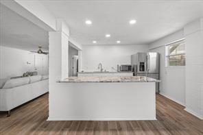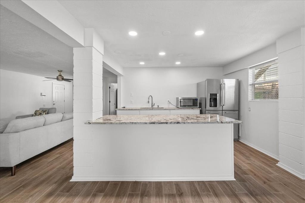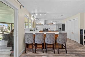 Experience waterfront living with everyday convenience and exceptional amenities! Situated right on the canal with effortless access to the bay, this beautifully updated home stands out as one of the few in Bayou Vista featuring dual living spaces and kitchens. Both kitchens are appointed with granite and quartz countertops and stainless steel appliances. Indoor and outdoor staircases make moving between levels easy and comfortable. Spend your evenings relaxing in the screened-in patio or soak up the sun on the spacious extended deck. This gem is truly a must-see! Easy access to I-45, and short commute to life in the City or a short stroll to Galveston Island!