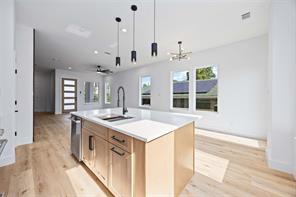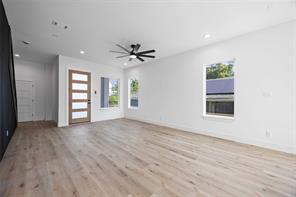 Experience modern living in the heart of the vibrant 5th Ward! This stunning new two-story home offers 3 bedrooms and 2.5 bathrooms, featuring a dramatic grand entry with soaring ceilings. Entertain effortlessly in the open-concept living/dining area and the beautifully appointed gourmet kitchen, complete with quartz countertops, custom soft-close cabinets, and high-efficiency stainless steel appliances. Enjoy the tile and vinyl flooring throughout, plus energy-saving features like a high-efficiency HVAC. Retreat to the upstairs primary suite with its high ceiling, exquisite porcelain tile in the private bath with double quartz vanities, a luxurious shower, and generous sized closet. Private backyard with pre-wired security cameras, & speaker system. With a private backyard, this home is ideally situated just 2 miles from Downtown and a quick mile from the transformative EADO East River Project. Schedule your showing today!
