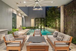 Stunning stucco/ red cedarwood 2-story contemporary, with elegant interior design by Chandos Dodson (founder of Chandos Collective), located in the noteworthy Glendower Court. Openly designed 1st floor plan includes 10- to 12-foot-high ceilings, handsome wide planked hardwood flooring, impressive formal living & dining entertaining areas, family room and kitchen/breakfast room/ wet bar with near floor to ceiling windows/sliding glass doors overlooking the fabulous pool/spa/decorative water features and positioned adjacent to the fully equipped summer kitchen & outdoor living/dining areas. A grand Primary Suite with expansive walk-in closet, generously sized Game Room with wet bar, Study & 3 additional guest bedrooms complete the 2nd floor plan. Special features include elevator, exceptional sleek modern finishes & stones, custom cabinetry and so much more. A must see!