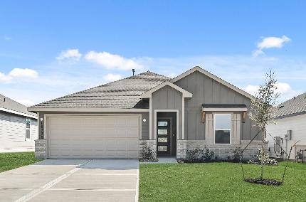Brand-new home in a prime location near Highway 249! This beautiful property comes complete with gutters and a sprinkler system. The thoughtfully designed layout features a dining area and an open-concept kitchen overlooking the spacious living room, perfect for everyday living and entertaining. Offering 3 bedrooms and 2 bathrooms, this home combines style, comfort, and convenience.
