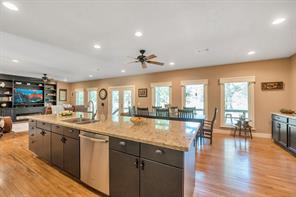 Set on nearly 1.5 acres along the Waterwood National Golf Course & just minutes from the neighborhood boat ramp, this home offers the perfect mix of recreation & relaxation. Enjoy open living & elegant dining w/hardwood floors, 9’ ceilings, picture windows, fabulous custom built-ins & a sleek electric fireplace. Updated kitchen features Cambria Quartz counters, floor-to-ceiling cabinetry, stylish backsplash & a 12’ island w/bar seating ideal for entertaining. Owner’s retreat includes a spacious walk-in closet, a luxurious ensuite w/dual sinks & a walk-in shower, & a glass door w/access to a 45x15 covered cedar porch. Relax on the extended patio, soak in the hot tub, or gather around the stone fire pit all w/sweeping golf course views. Extras include a generator, a 32x36 garage/workshop, a finished 20x12 shed w/50-amp service & mini-split A/C, sprinkler system & water softener. With golf, a park, pool & boat ramp all within steps of home, every day feels like a getaway.