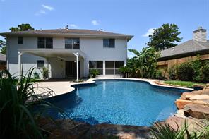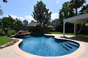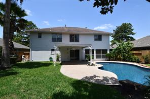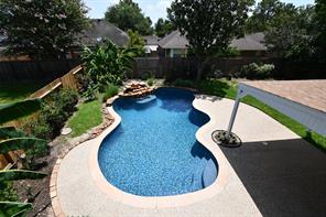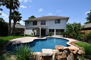 Large subdivision lot! 2 story charmer! Move in ready! Recent carpet and paint! Wood flooring and tile on first level, wood game room, bedrooms carpet! Home office (or formal living!), dining area, large family room with fireplace! Kitchen with separate utility room! Breakfast area, powder bath!! All bedrooms up with a large primary bedroom big enough to accommodate a sitting area! Renovated primary bath! Three additional bedrooms with a full bath! Game room! BEST of all resort style swimming pool recently resurfaced and spectacular cascading waterfalls! Area Tennis Courts and community pool also in the neighborhood! Right Off I-10 and Mason Rd! Washer/Dryer/Refrigerator!
