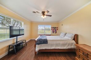 This spacious 5-bedroom, 2.5-bath home on 2 acres in Palacios offers 2,875 sq. ft. of living space, providing plenty of room for family and guests. The large living area is perfect for gatherings, and one of the bedrooms was a garage conversion, now complete with a half bath and an exit door, offering versatile use as a fifth bedroom, home office, game room, or flex space. The expansive yard offers room for outdoor activities, and the property includes a gazebo for outdoor enjoyment. A 684 sq. ft. storage building adds extra space for storage or projects. A circle drive and carport ensure convenient parking. Located just minutes from the bay and local amenities with easy access to TX-35, this home blends comfort, space, and versatility in a peaceful setting.
