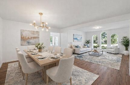 This stunning home has been completely redone inside and out! Featuring all-new electrical wiring, plumbing, HVAC, and recent foundation work with a transferable warranty, it offers peace of mind and modern style. The kitchen boasts custom cabinetry with soft-close drawers, brand-new stainless steel appliances, a gas range, and quartz countertops with a waterfall peninsula—perfect for extra seating. The open layout is filled with natural light from new energy-efficient windows. A flexible front room can serve as an office or playroom. The spacious living room includes a fireplace with custom built-ins. Beautiful new flooring runs throughout. Both bathrooms are fully updated with trending finishes, quartz countertops, and custom cabinetry. The primary suite features a large walk-in closet and a spa-like bath with dual sinks and a spacious shower with a bench. Enjoy outdoor living in the fenced backyard with a patio!