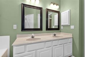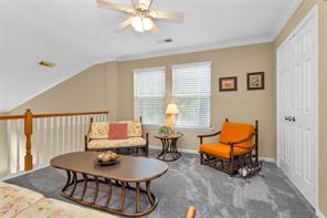 Well maintained, immaculate home, cared for by the original owner. This 2 story townhome is located on the corner of a cul-de-sac so has additional green space on the side. Open plan living area with soaring ceilings in living room with gas log fireplace. Laminate wood floors in living and dining areas. Carpet in the bedrooms and on the second floor. Central, island kitchen with updated Stainless Steel appliances (fridge included). Cute corner breakfast area with plenty of windows. Primary suite is on the first floor with double sinks and separate shower and large, soaking, corner tub. Game room upstairs is open to the first floor. 2 secondary bedrooms and a bathroom upstairs. Book cases in the bedroom used as a home office will remain. Guest powder room and utility room are on the 1st floor. Cute back garden and patio area is fenced with flagstone and rock for easy maintenance.