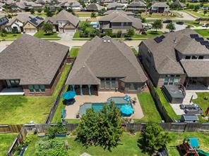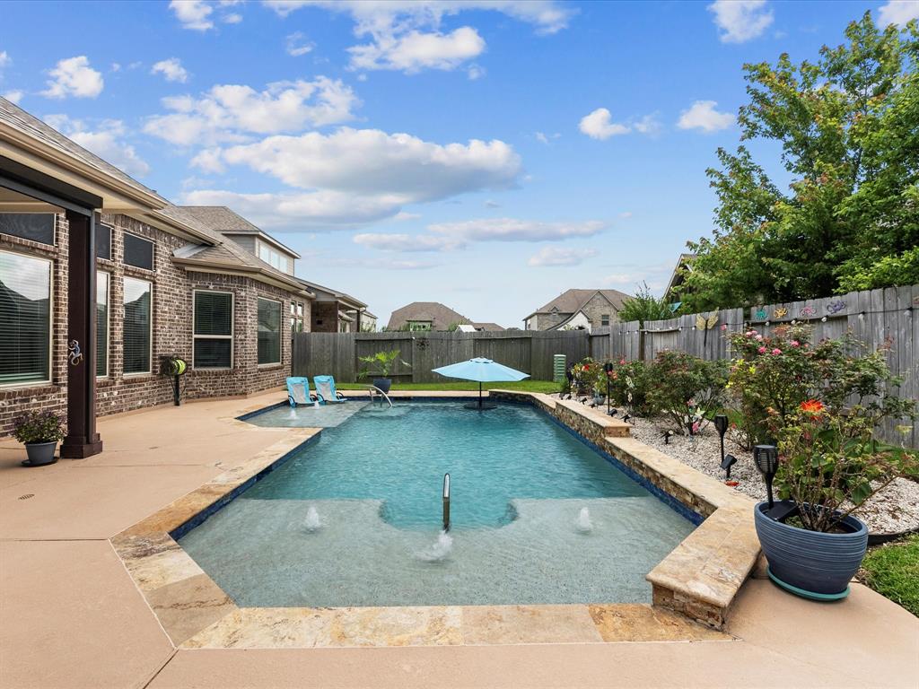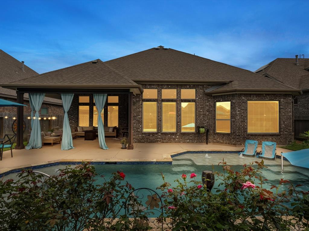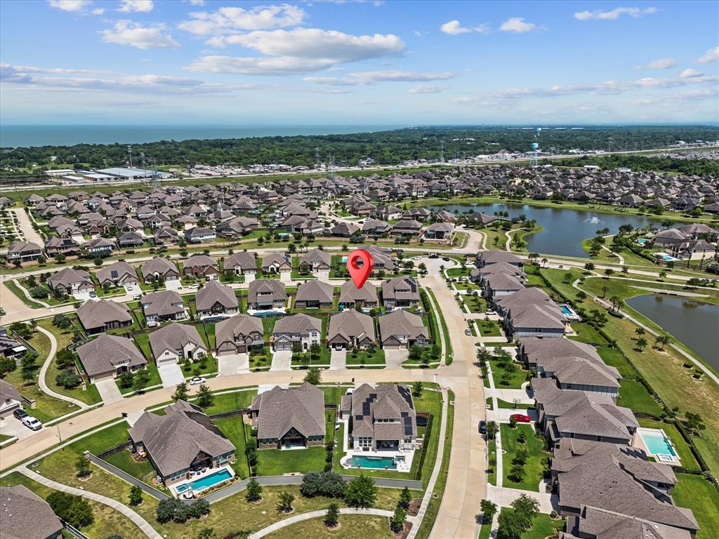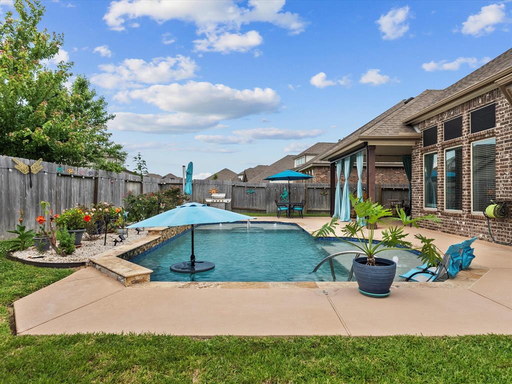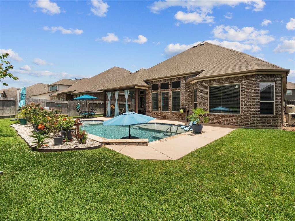 This beautiful 1-story home features 3 bedrooms, 2.5 baths, a study/optional room, and a pool so refreshing, you'll be doing cannonballs before you can say pool party! A great open floorplan, 10' ceilings, big open kitchen with an enormous island, and a built-in microwave that even grandma can reach. The oversized bedroom provides an awesome view of the pool, is attached to a large en-suite bathroom, and a closet so big you could hide your online shopping habit for months! Stay cool this summer with a retractable drop-down solar screen on the back porch—perfect for relaxing in the shade after a swim. Sprinkler system front and back. Great neighbors. Great location - close to Kemah, Clear Lake, Houston & Galv. Community lakes, catch & release fishing, parks, splashpad, walking trails, wildlife, and award winning schools add to the allure of the Mar Bella community. This is more than a house! It’s a lifestyle!