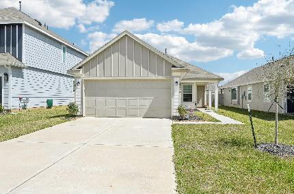 River's Edge is a coveted new construction community near The Woodlands in Conroe, Texas. The Newcastle plan is a 1-story home that comes standard with 3 bedrooms, 2 baths, and includes abundant counter space in the kitchen, a pantry, large primary walk-in closet, and spacious laundry room. Upgrades include - No rear neighbors, Sod front and back, Stainless steel appliances.
