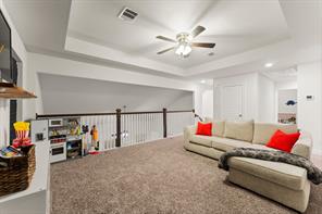 WELCOME HOME! This beautiful 2-story home is located in the desirable Tavola community, minutes from Hwy 59 and access to Grand Parkway 99! It offers a spacious layout with the Primary bedroom on the first floor and all 3 additional rooms upstairs. Enjoy hosting in this open-concept with a view of the living room from the kitchen, which is ideal for entertaining! The soaring ceilings in the living room add a dramatic touch and allow a view of the 2nd floor. Step outside to a private covered patio, perfect for cookouts and outdoor relaxation with NO BACK NEIGHBORS! With its perfect blend of comfort and style, this home is ready to be yours!