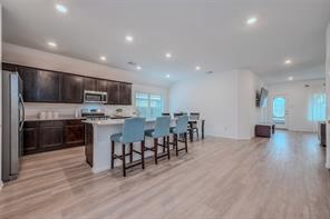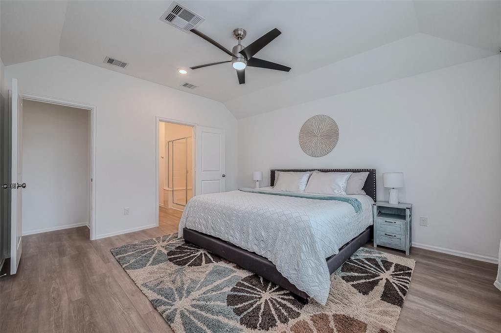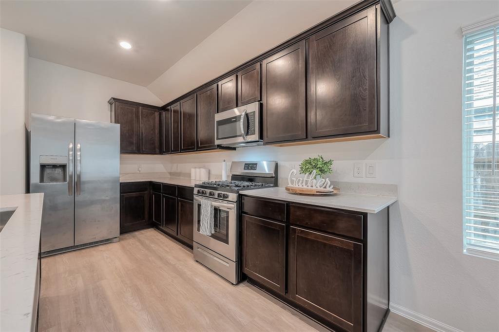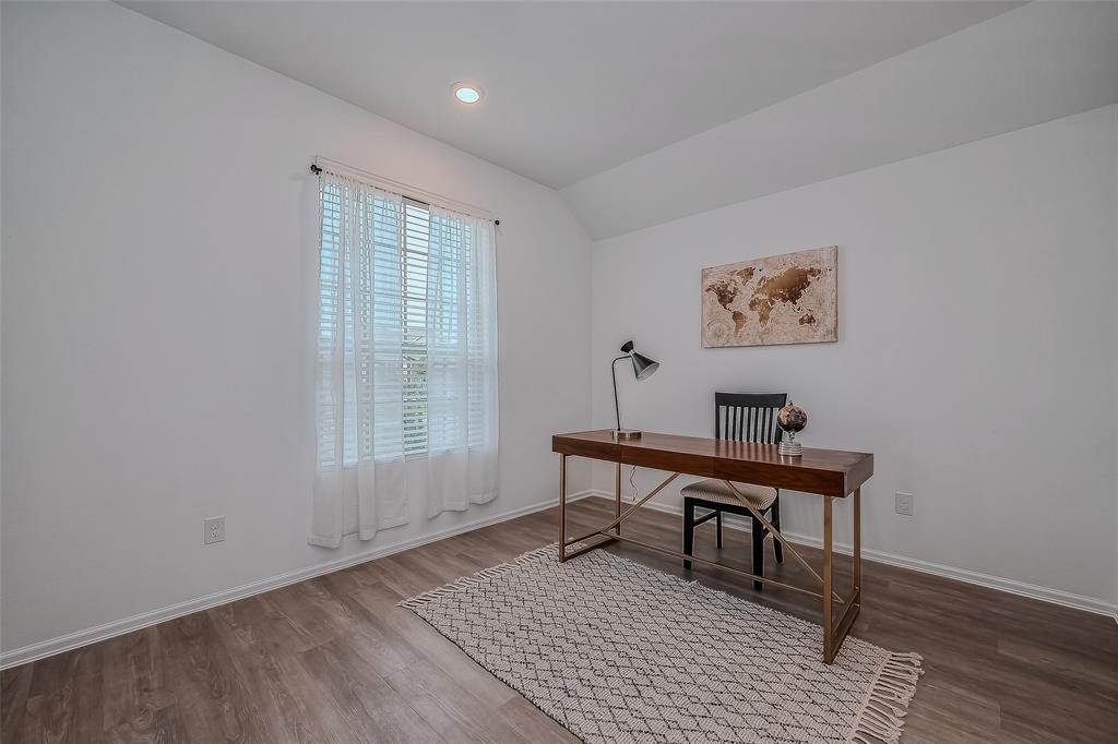 BEAUTIFUL,IMMACULATE, home on a Cul-de-sac street in the wonderful community of Tavola! This home features high ceilings, beautiful wood-like laminate flooring, study with French doors and covered back patio. Entertain your guests in the large island kitchen, equipped with shaker-style cabinets, artic white QUARTZ countertops, stainless steel appliances including refrigerator and walk-in pantry. Relax in the large primary suite that overlooks the backyard, bathroom has a nice walk-in closet and large shower with bench. The backyard has plenty of room for a garden and all outdoor activities. The whole house is a SMART home equipped with a Ring Camera/Bluetooth Front Door & Garage/ Ring Doorbell, all staying with the home. Tavola is a master-planned community conveniently located just minutes from US-59 with amenities that include a pool, rec center, clubhouse, pocket parks, miles of trails & an on-site elementary school. 15 minutes to IAH AIRPORT. 35 minutes to DOWNTOWN HOUSTON!