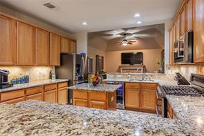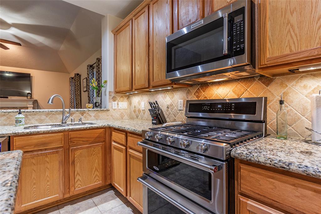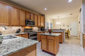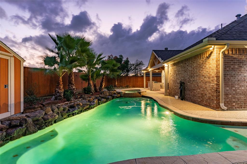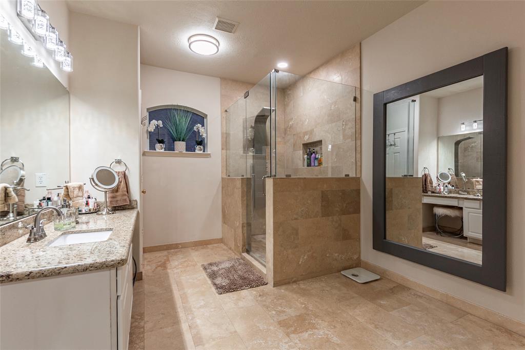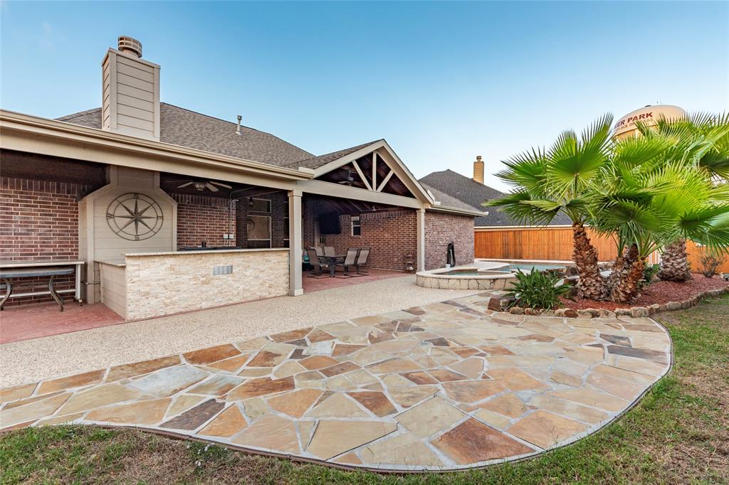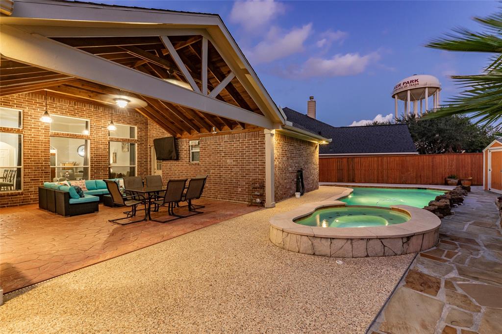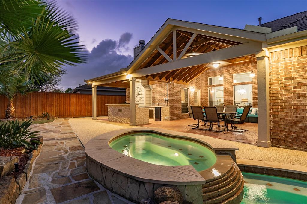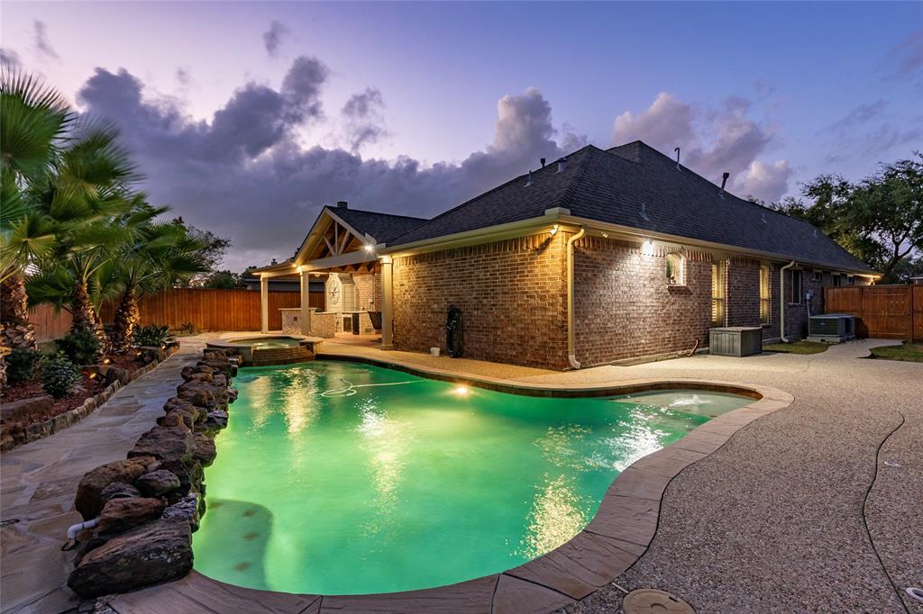 Your backyard oasis is awaiting! Summers are more enjoyable while on this amazing patio. With a saltwater pool, custom outdoors kitchen and the privacy of having no back neighbors, your gatherings, or just any given time here will be just perfect. This lovely home offers a large primary bedroom that connects to another room, perfect for a nursery or home office. A massive primary bathroom with custom shower, his and hers sinks.This, along with the other two bathrooms, have been completely, tastefully remodeled with travertine floors and shower walls, granite countertops, LED lights, and frameless glass doors. Roof replaced about 3 years ago.AC units less than 3 years. Pool pump upgraded about 1 year ago, tankless / on-demand water heater installed less than 1 year ago, along several other upgrades.