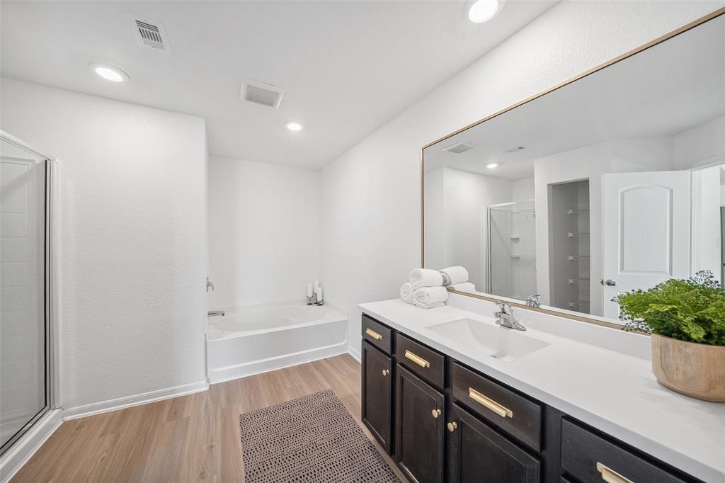 Like new home ready for move in. Lots of fresh updates! New carpet in the whole home, new paint throughout inside of home including garage. Brand new refrigerator from Home Depot with plastic still on it, under warranty. New blinds, new ceiling fans/lights upstairs in every bedroom. New brushed gold cabinet hardware throughout, new mirror w/ matching brushed gold frame trim in primary bath. New brushed gold kitchen faucets. New commercial epoxied garage floor with flakes and clear coat! New front and rear door handles and locks. New sprinkler system and new grass front and back with new landscaping. New garage door. It smells like a new home when you walk through the front door! I have had every system gone through by professionals, this home needs nothing! We have taken care of all maintenance items for you.