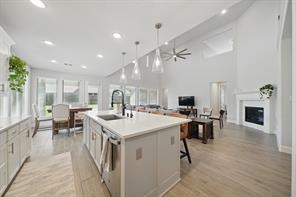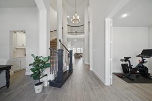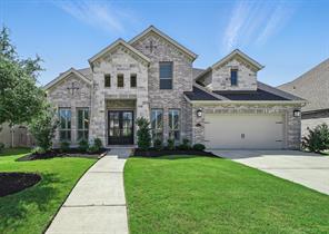Located in Veranda, this Perry Homes two-story offers 5 bedrooms, 4.5 baths, and a 3-car garage. A 20-ft rotunda entry opens to a home office with French doors and formal dining. The family room features a 19-ft ceiling, fireplace, and wall of windows. Kitchen includes a large island with seating, 5-burner gas cooktop, walk-in pantry, and butler’s pantry. First floor includes two bedrooms, including the private primary suite with dual walk-in closets, soaking tub, glass-enclosed shower, and curved wall of windows. Upstairs includes a game room, media room, 3 bedrooms, and Hollywood bath. Exterior highlights include an extended covered patio. A mudroom is located inside, just off the garage entry. Solar panels are currently installed and may remain with the home; the system is transferable or can be removed at the buyer's request. Zoned to Lamar CISD. Contact your Realtor today to schedule a private tour and explore everything this home has to offer.