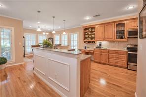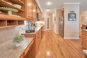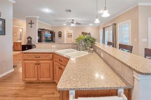 Stunning 1-story on a wooded corner of the beautiful Waterwood Golf course! This full brick home offers 3 bedrooms & 2 full bathrooms in an open, airy floor plan with hardwood floors, wood-shuttered windows, chic lighting & fans, neutral paint & so much more. Spectacular island kitchen features custom cabinetry w/a chef’s desk, granite countertops, sleek SS appliances & a massive walk-in pantry. Roomy guest bedrooms have large closets & easy access to a full bathroom. Posh owner’s retreat features ensuite access to the covered patio, a massive walk-in closet & a spa-inspired ensuite w/dual sinks, a relaxing jetted tub & oversized walk-in shower. Custom utility room w/cabinets, folding counter & sink. Covered patio overlooks .35-acre lot filled w/towering trees & views of the golf course just behind the home. Attached 2-car garage w/remote openers, steel roof & 10 zone sprinkler system. Waterwood offers golf, a boat ramp & lake access, pavilion, park, pool & super friendly neighbors.