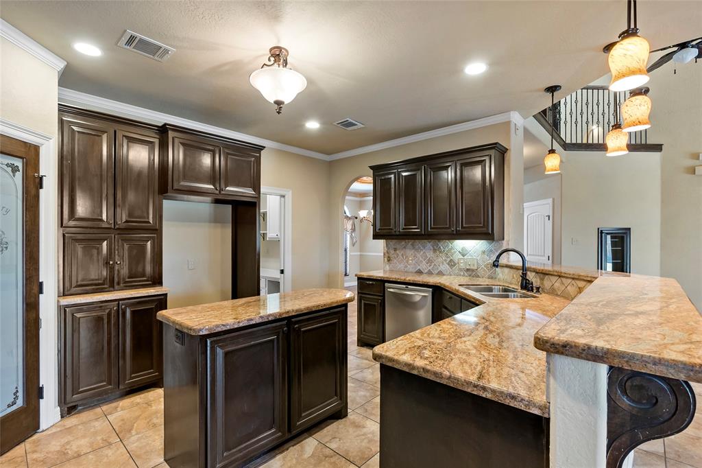 Discover unparalleled luxury and refined living in this stunning 4-bed, 4-bath home. The expansive living room is adorned with soaring ceilings, built-in media cabinet, and cozy wood-burning fireplace. A sophisticated bar situated between the living area and formal dining room caters to your hosting needs. Culinary enthusiasts will relish the gourmet kitchen, equipped with granite countertops, custom cabinetry, an expansive island, and a long eating bar. The primary retreat, discreetly positioned with its own private hallway, offers a luxurious bathroom featuring an oversized soaking tub, dual sinks, and an intricately tiled shower. The home also includes a versatile flex room/study on the main floor and a covered patio with an outdoor kitchen area and grill. Upstairs, three bedrooms and two bathrooms provide ample accommodation. Enjoy the amenities of Castlegate with its pool, sports courts, and serene walking trails. Don't miss making this exquisite property your future home.