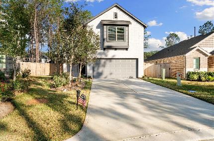 FULLY FURNISHED 5-bedroom, 4 Full Baths for lease in Woodforest! This 2022 build, 2,800 sq ft home offers 2 bedrooms downstairs with a spacious En-suite Luxurious Bath in the Primary suite and a private guest suite with a nearby full bath. A stunning 2-story entry, formal dining, and game room are also available for this family- oriented home. The gourmet kitchen features stainless steel appliances, granite countertops, cabinet space galore, a breakfast bar, Breakfast Room. Wood-look tile floors are throughout the main level making maintenance a piece of cake. The bedrooms and game room offer plush carpet comfort. Enjoy a spacious backyard with covered patio plus a welcoming front porch—perfect for relaxing or entertaining. Stylish, comfortable, and move-in ready in one of Montgomery’s most desirable communities, which offer tons of amenities for your enjoyment! It is move-in ready and waiting for you! Just Bring your clothes, everything else is provided, including linens and dishes!