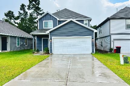 Immaculate like new 4 bedroom home in RIVERS EDGE, Legend Homes, WISTERIA MODEL, 4 Bedrooms, 2.5 baths & a 2 car garage. Located in highly sought after WOODLANDS SCHOOLS! (WOODLANDS HIGH SCHOOL). Situated on a corner lot w/fully fenced backyard for privacy & covered front & back patios. Enjoy jogging or hiking on fitness oriented trails or cool off in the neighborhood pool, enjoy a picnic with playground amenities or take your pet to the friendly dog park! Home features downstairs Primary bedroom/bath with oversized shower, dual sinks & walk in closet. Upstairs boasts 3 bedrooms, full bath w/dual sinks & a spacious game room! Refrigerator & washer/dryer included in the lease. Pets are case by case.