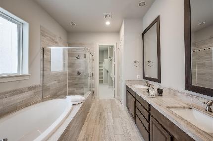 Stunning 3-bed, 3.5-bath home in The Heights with 2,320 SF of stylish living. Each bedroom features an en-suite bath, including a large first-floor guest suite. Hardwood floors throughout, with travertine marble tile in all baths. The spacious primary suite offers room for a sitting area, walk-in closet, and spa-like bath with dual sinks, soaking tub, and glass shower. Gourmet kitchen with Bosch appliances (LG fridge), gas cooktop, granite counters, wall oven/microwave, pantry, and soft-close cabinets. Open-concept living with gas fireplace, custom dry bar, and balcony. Tall ceilings, recessed lighting, and Levolor shades. Full-size washer/dryer stay. Metal roof, irrigation front/back, and exterior pest system. New app-controlled garage opener. Community pool; HOA covers water/trash. Prime location inside the loop near Downtown.