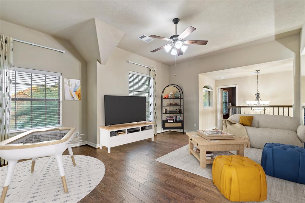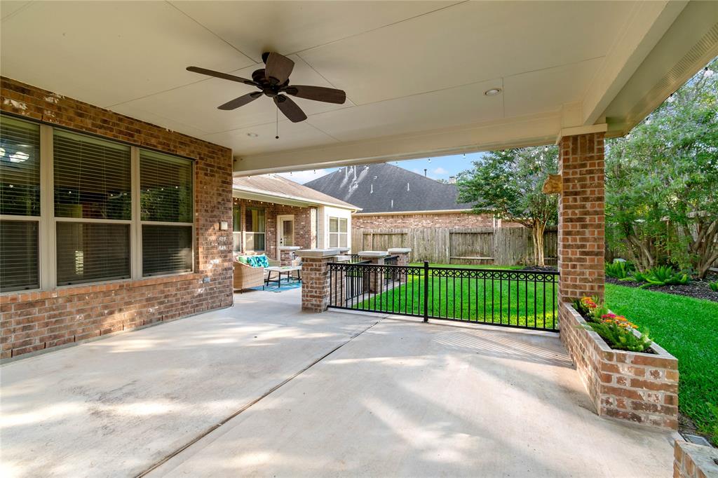 Elegant 4BR/3.5BA home in Oakhurst’s desirable Terrace section! Featuring soaring two-story windows, rich handscraped hardwoods, media room, gameroom, and a grand living space with a gaslog fireplace. The luxury island kitchen offers bullnose granite, 42'' maple cabinets, stainless appliances, and a gas cooktop. Spacious primary suite overlooks a beautifully designed backyard retreat and includes a spa-like bath with dual vanities, soaking tub, separate shower, and walk-in closet. The oversized garage includes a 10x20 workshop. Step outside to a custom patio with a large covered area perfect for dining or relaxing, plus an open section ideal for a jacuzzi or sun lounge. Built-in gas grill, lush landscaping, and plenty of yard space to add a pool. Easy access to I-69, IAH, and downtown. Community amenities include golf, pool, parks, and trails.