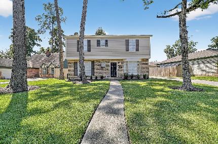 Nestled under nine oak and pine trees in the rolling hills of Londonderry, just south of The Woodlands, this fully brick home was beautifully renovated in 2025 with craftsmanship and modern features. The heart of the home is the all-new kitchen, boasting soft-close cabinets, an appliance garage, built-in trash bins, quartz countertops, and stainless steel appliances. It opens to the den with a long bar perfect for entertaining, views of the fireplace and TV from the kitchen. Stylish tile flooring runs throughout, with Luxury Vinyl Tile in the bedrooms for added comfort. The spacious backyard has plenty of room for a future pool or outdoor retreat. Londonderry amenities include a private pool, tennis courts, clubhouse, and playground. Updates include: New cabinets, quartz counters, all new appliances, window coverings, cellular shades, 2” blinds, water heater, garage door opener, barn door to primary bath, double-pane windows, ceiling fans, and select light fixtures.