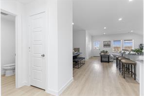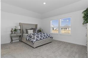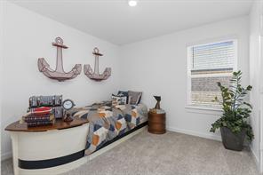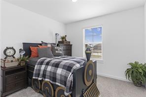 Welcome to the Harris floor plan at Canterra Creek, a beautifully designed single-story home spanning 1,831 square feet in Iowa Colony, Texas. This thoughtfully crafted layout includes four bedrooms, two-and-a-half bathrooms, and a two-car garage, offering both space and functionality for modern living. As you step inside, you’ll immediately notice two secondary bedrooms near the front of the home, each featuring plush carpeting, tall closets, and large windows that fill the rooms with natural light. A full bathroom, complete with vinyl flooring and a tub/shower combination, sits between these bedrooms for easy access. Moving through the foyer, you’ll find a powder room and a utility room with space for a washer and dryer, making laundry day a breeze. Adjacent to this area is the third secondary bedroom, featuring carpet flooring, a tall closet, and a bright window overlooking the side yard. Photos for illustration only. Actual home may vary.