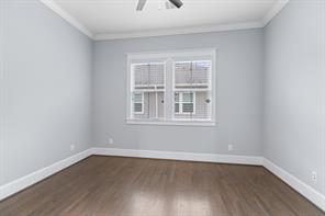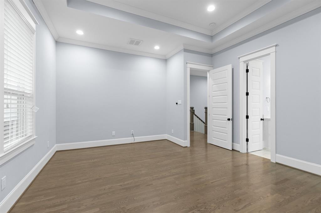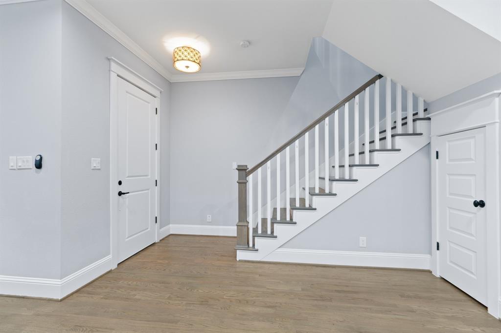 Stunning 3 bedroom home with highly desirable first floor living & abundant natural light. Rare open plan offers the living room, dining room & kitchen on first floor with all bedrooms on the second floor. The spacious open plan features hardwood flooring, gourmet oversized island kitchen with marble counters, stainless steel GE appliances, dry bar with wine fridge, high ceilings, LED lighting & custom built-in cabinetry. Upstairs features a large primary suite with luxurious primary bathroom with marble counters, dual sinks, oversized garden tub & separate shower with access to huge walk-in closet with built-in cabinetry connecting to laundry room. The second floor includes a flex space/study nook at top of the stairway & 2 secondary bedrooms with a secondary bathroom. Entry has iron fencing at front of the house with access to a private side yard. In the Oak Forest Community walking distance to hike & bike trails, local parks, restaurants with easy access to The Heights and Downtown!