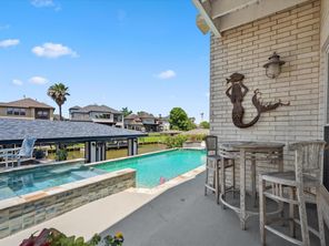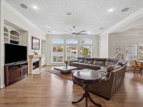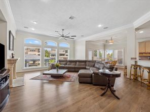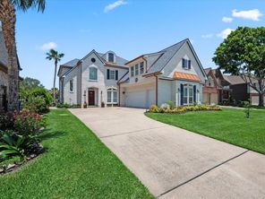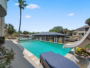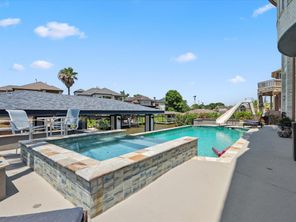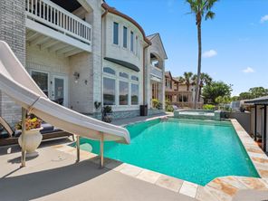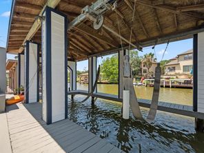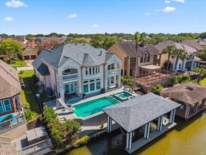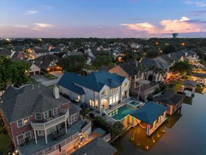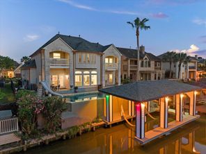 WATERFRONT LIVING WITH ALL THE AMENITIES YOU COULD ASK FOR INCLUDING SALTWATER POOL W/ WATERSLIDE, SPA, BOAT HOUSE WITH LIFT, 3 CAR GARAGE & MORE ALL ON A QUIET CUL-DE-SAC! THE INTERIOR OFFERS AN OPEN FLOORPLAN WITH WOOD FLOORS, LARGE DINING ROOM W/ ARCHWAYS & CROWN MOLDING, DEN W/ CAST STONE FIREPLACE, BUILT-IN SPEAKERS & ENTERTAINMENT CENTER, ISLAND KITCHEN W/ 6 BURNER COOKTOP, CHEF'S DESK, SS DBL OVENS & WARMING DRAWER, AND OFFICE & BREAKFAST ROOM W/ PATIO ACCESS. THE 2ND LEVEL FEATURES A SPACIOUS PRIMARY SUITE W/ PRIVATE BALCONY & BEAUTIFUL BATH W/ HIS/HER VANITIES, WHIRLPOOL TUB & WALK-IN SHOWER. GUESTS WILL ENJOY 2 SPARE BEDROOMS, A 2ND PRIMARY SUITE WITH SITTING AREA AND UPDATED FULL BATH W/ WALK-IN SHOWER. THE UPDATES CONTINUE WITH DOUBLE PANE WINDOWS, ROOF IN 2020, TANKLESS WATER HEATER, AC DUCTS IN 2021 & POOL HEATER IN 2020. INCREDIBLE NEIGHBORHOOD AMENITIES ARE JUST AROUND THE CORNER INCLUDING BOAT RAMP, TENNIS & VOLLEYBALL COURTS, JOGGING PATH & MORE! DON'T MISS OUT!